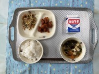 今日の献立:スープ煮、赤魚のトマトソース、枝豆、コッペパン、牛乳です。