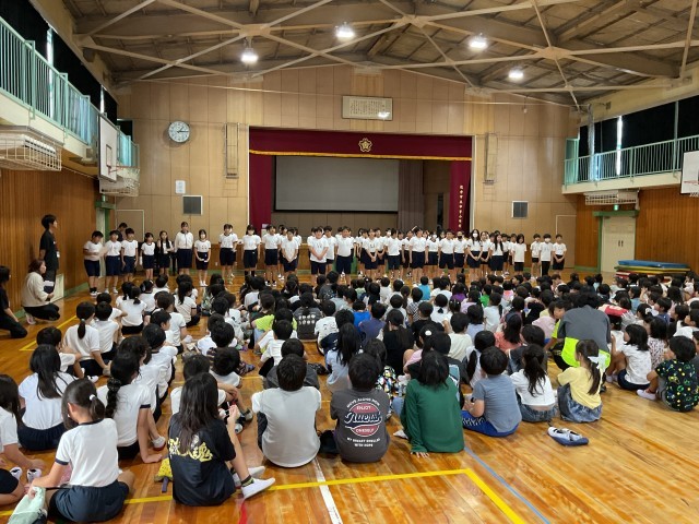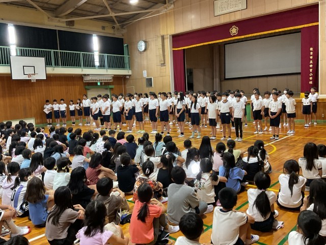 今日の中宮タイムは6年生が修学旅行の報告を行ってくれました。