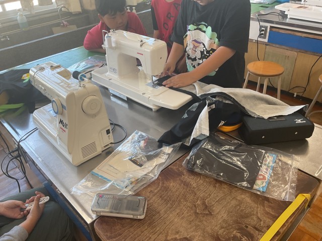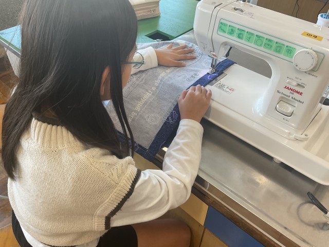 5年生が家庭科でエプロンを作成しています。