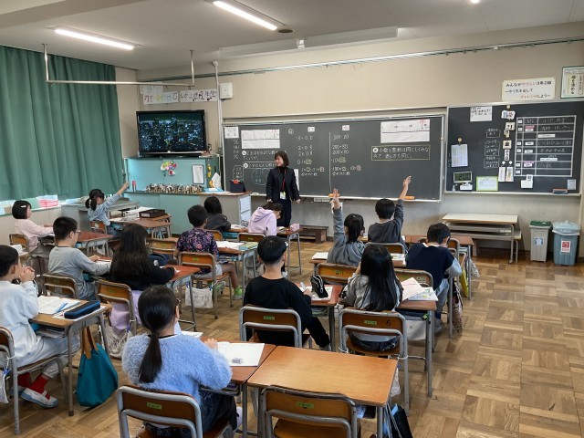 算数「小数 数の表し方や仕組みを調べよう」の学習の参観が行われました。
