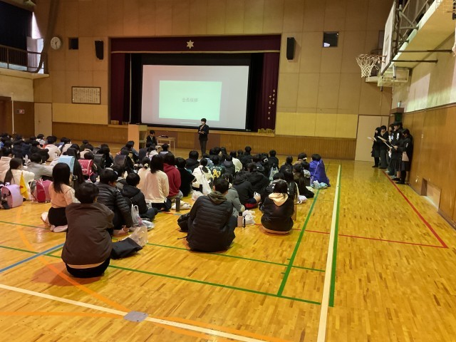 中学校では、生徒会が6年生からの質問に答え、入学後の生活に