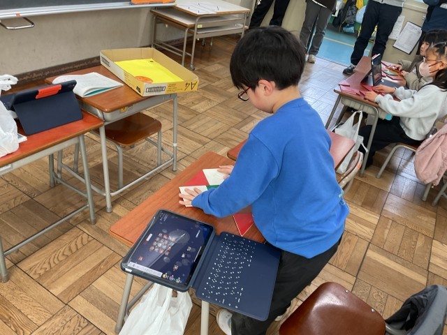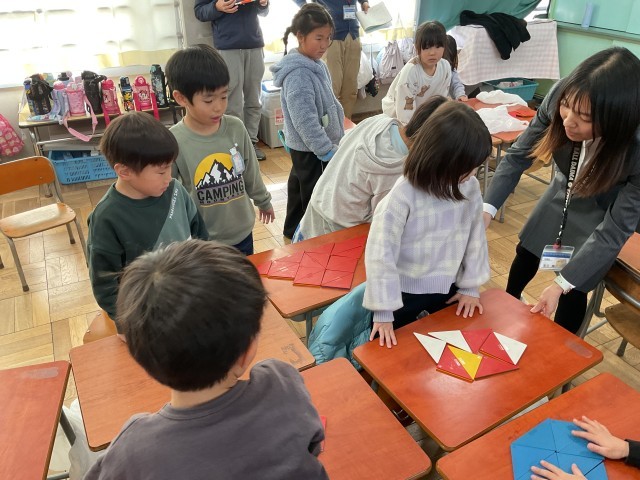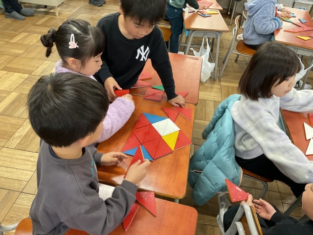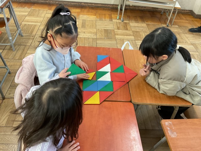 みんながどんな形を作ったのか見合ったり、相談したり、