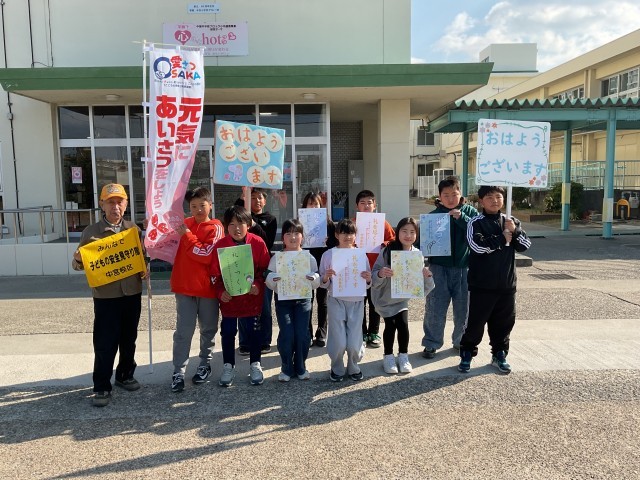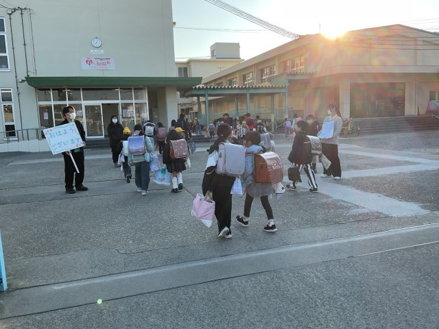 寒い中、登校してきた中宮小のみんなに