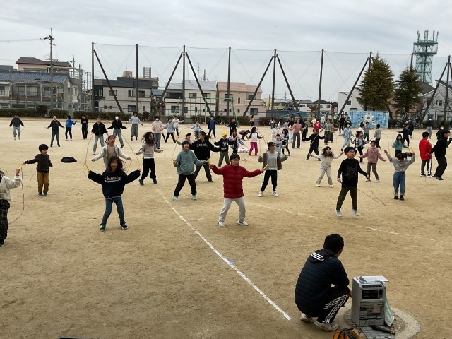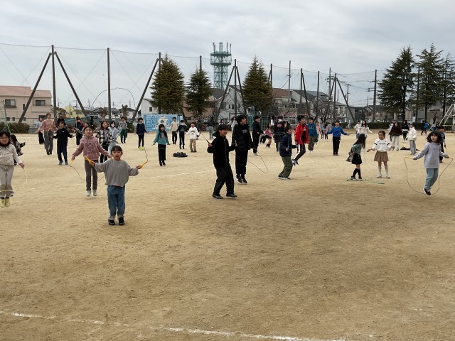 体力向上の一環として昼休みにリズム縄跳びが行われています。