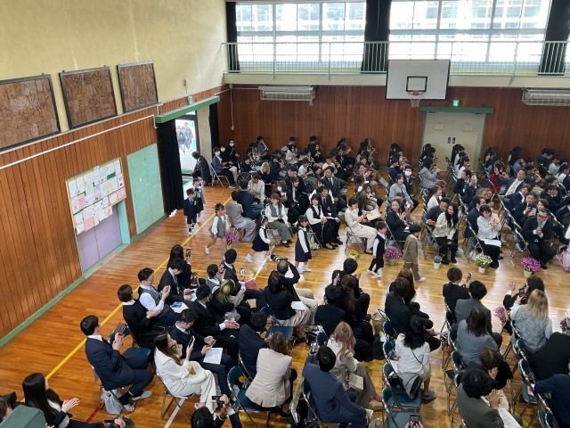 新入生の皆さんが、元気に中宮小学校の門をくぐりました。
