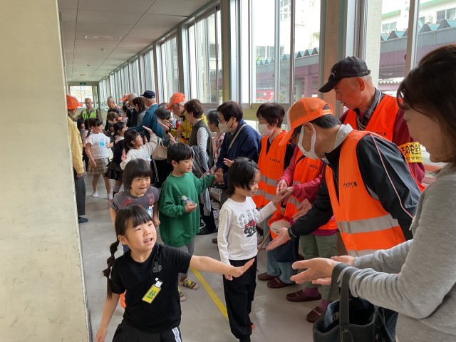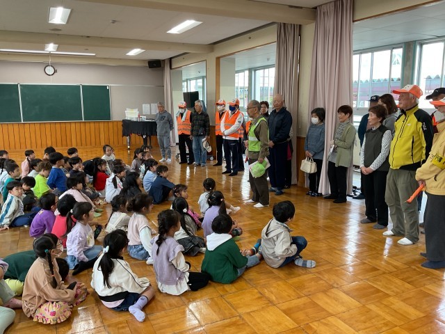 登下校の安全についてお話を聞き、コミュニケーションをとっていました。