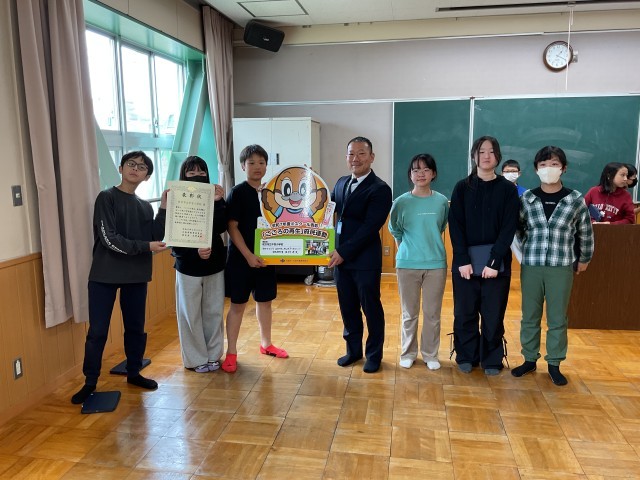 中宮小学校の挨拶運動の素晴らしさが認められました。