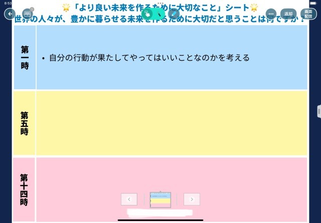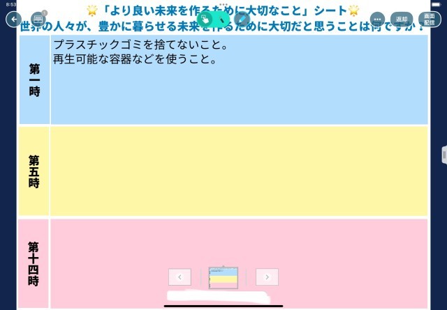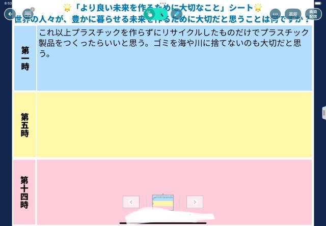 学習を進めながら「より良い未来を作るために大切なことシート」でその時点の考えを確認しますが、学習前でも子ども達は環境問題についてしっかり自分の考えを持てています。