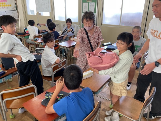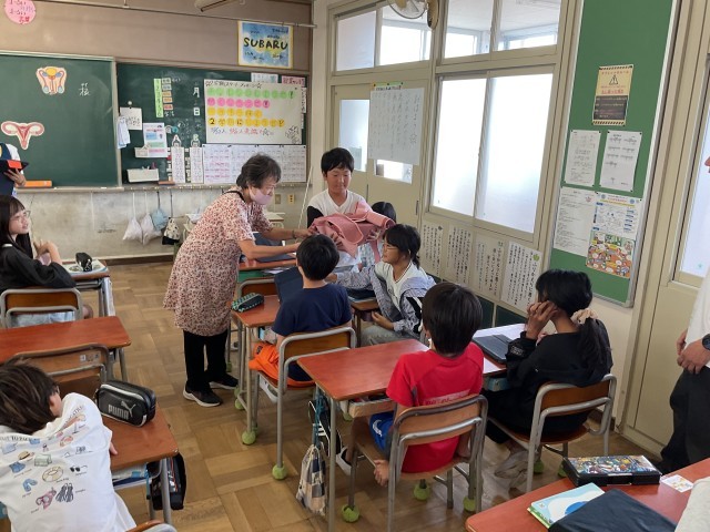 子宮の中で成長していく胎児を学びますが、今日は妊娠体験ベルトで妊婦さんについても学習しました。10ヶ月の赤ちゃんの重さをベルトをつけたり、持ってみて「お母さんの大変さがよく分かった」といった声が聞けました。母の想いや命の尊さについて学んだ5年生でした。