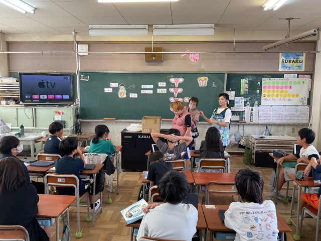 5年生の理科ではヒトのたんじょうについて学習します。ゲストティーチャーとして本校の養護教諭が授業をしてくれました。
