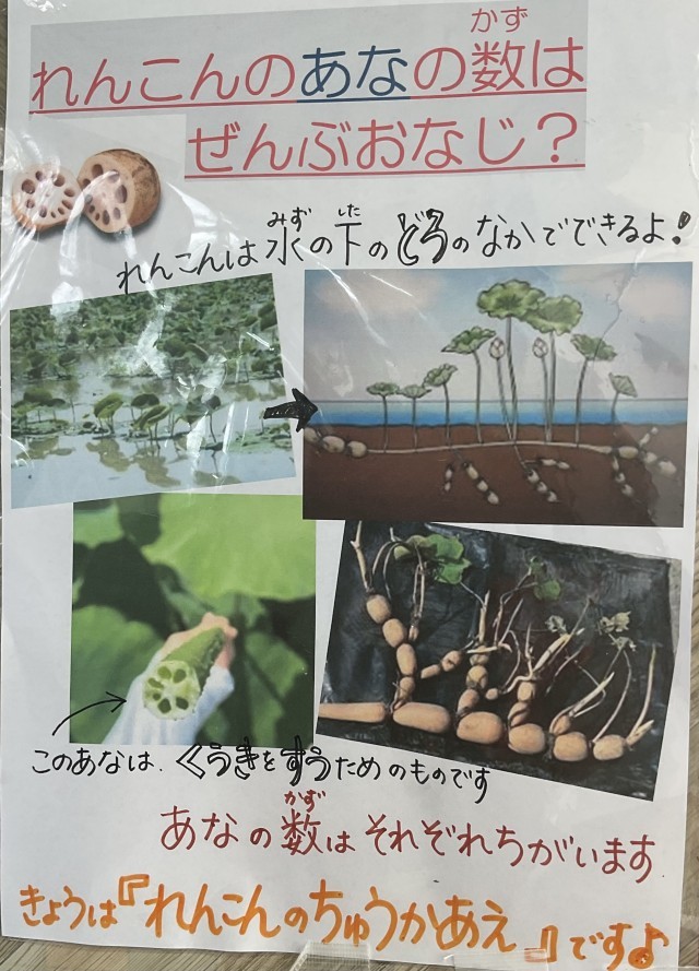 今日の給食はれんこんの中華あえです。シャキシャキした食感とさっぱりした中華ドレッシングの味が美味しいです。ちなみにれんこんの穴は空気を吸うための穴で、穴の数はそれぞれ違うようです。【献立】れんこんの中華あえ、マーボー豆腐、ミニフィッシュ、ご飯、牛乳