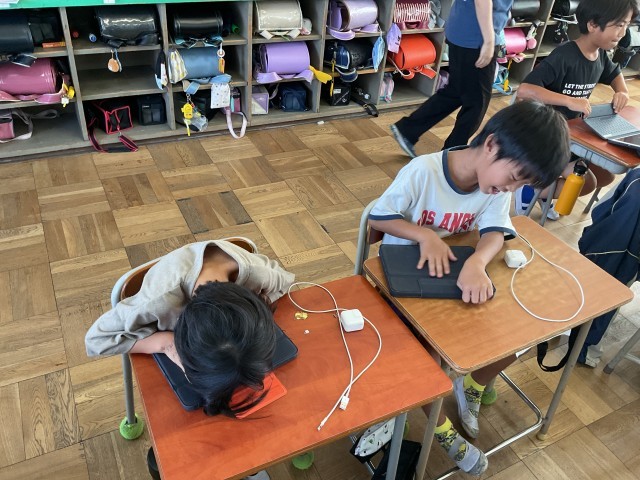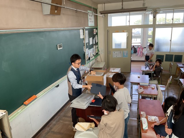 10月に入り新しいタブレット端末が貸与されます。それに伴いこれまで使用してきたタブレット端末は返却になります。返却する際に、タブレット端末に「さようなら〜」「今までありがとう!」等、別れを惜しんでいました。