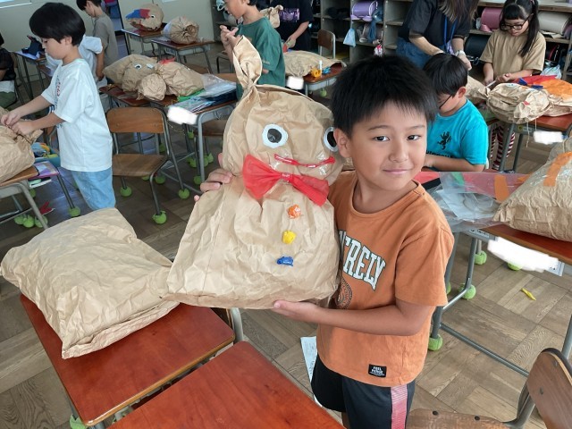 以前紹介しました、2年生の図工『ぎゅっとしたいわたしの友達』が完成しました。作品が完成すると、ぎゅっと抱きしめる2年生達。愛くるしい作品が沢山できました。