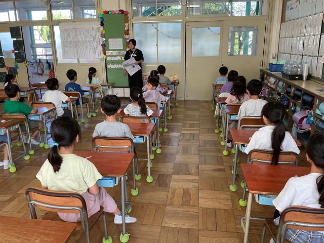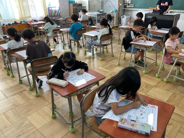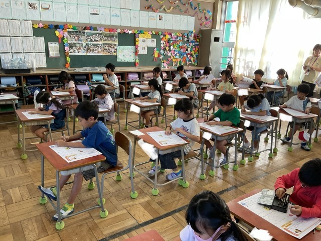 1年生は、国語も算数もテストでした。やる気がテスト隊形から伝わります。一問一問、きっちり取り組んでいました。