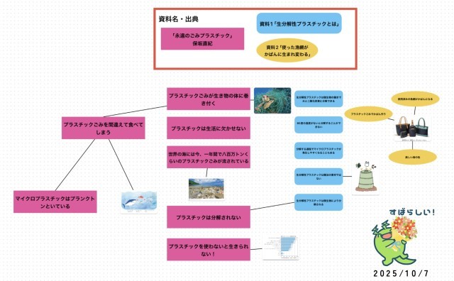 これまで国語の学習で取り組んできた『SDGsパビリオンポスター』作りの中間発表会です。これまで自分が伝えたい発表内容を「つなげチャート」や「組み立てメモ」にまとめ、それをもとにポスターに落とし込みます。中間発表会で現時点の作成した物を同じテーマの友達に伝え、アドバイスを貰います。授業発表ということもあり、枚方市教育委員会の方々が沢山参観されていましたが、6年生は自分達のペースで取り組んでいました。