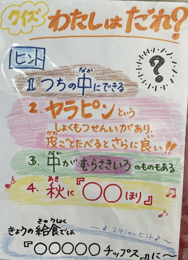 今日の給食もさつまいもチップスが出ました。小袋に入っており、お菓子感覚で食べられるので嬉しいですね。【献立】さつまいもチップス、ハッシュドポーク、ささみと人参のサラダ、コッペパン、牛乳