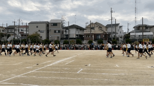 5年生は入場から見せてくれます。クイックピラミッドからの、子ども達が紙一重で交差する集団行動。