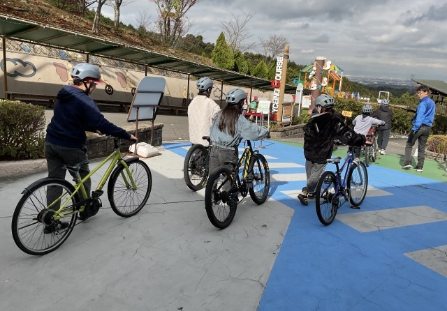 サイクリングコースは1周2.5kmで約15分程、自転車に乗ります。