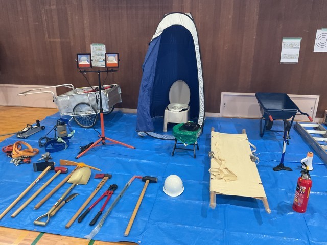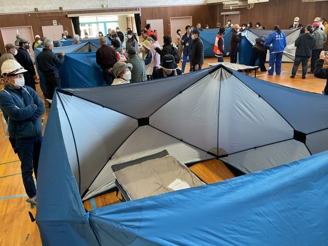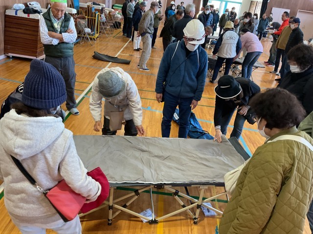 後半は簡易ベットやパーテーションの組み立て方を体験しました。