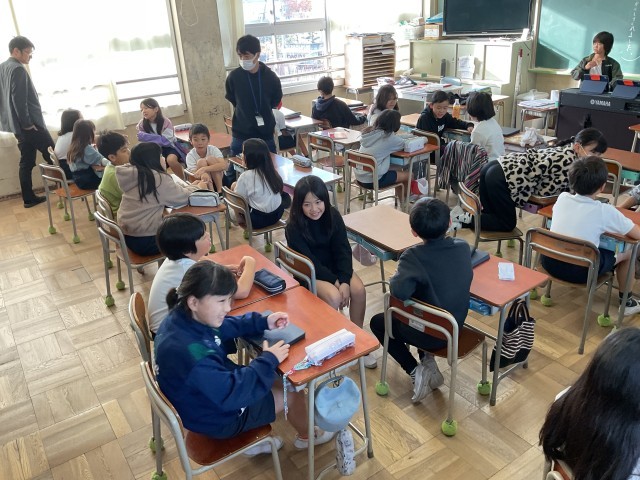 児童会委員会が学校を盛り上げるためにどんなことをしたいかと、各教室に聞きに回っています。