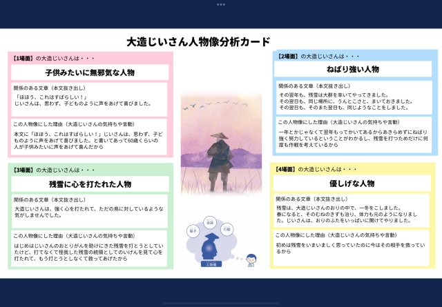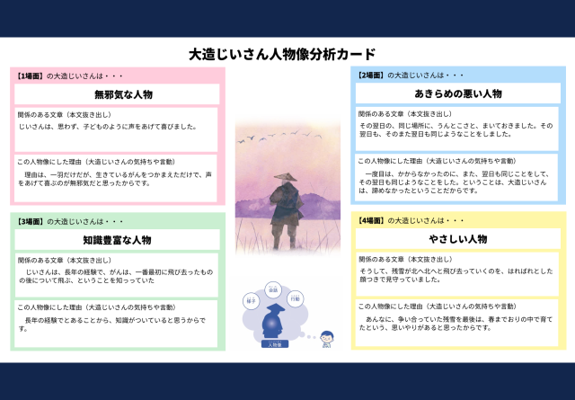 これは物語教材の「大造じいさんとがん」の登場人物、大造じいさんの人物像を深めることをめあてにした取り組みです。