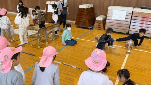 今日は幼保こ小の架け橋プログラムの一環で、本校1年生が小倉保育所を招待して「あきフェス IN おぐランド」を実施しました。