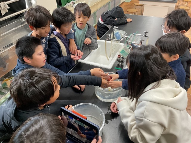 4年生の理科は水と空気を温める実験をしました。