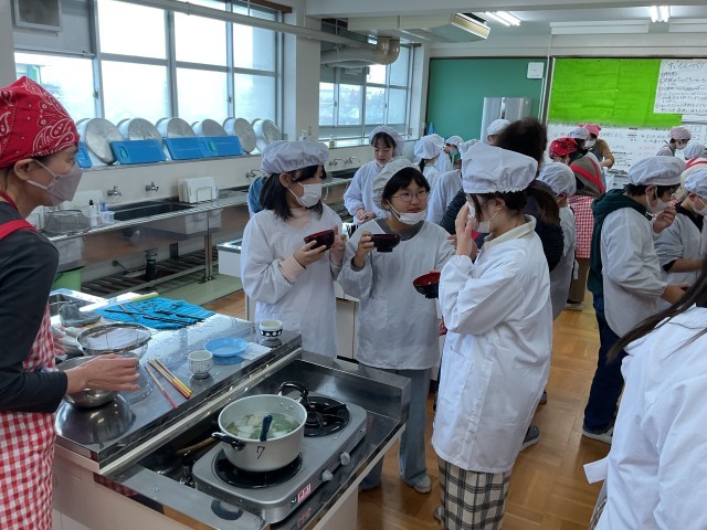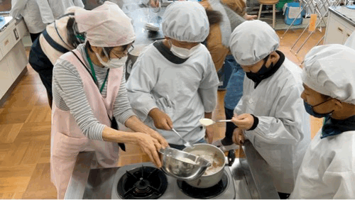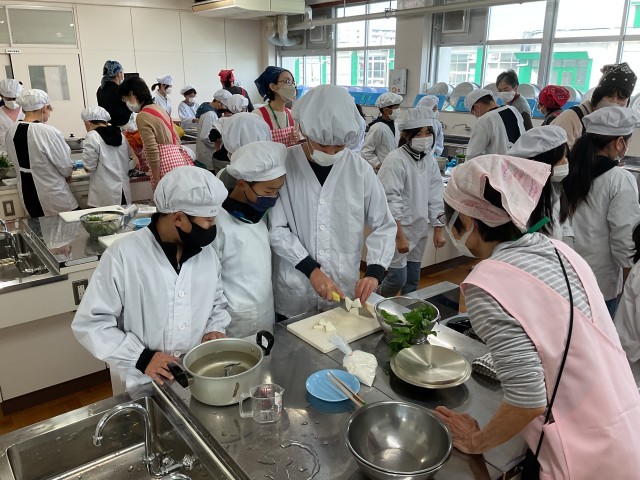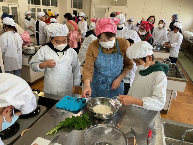 今日は地域・福祉委員会の方々が5年生にすいとんの作り方を教えて下さいました。