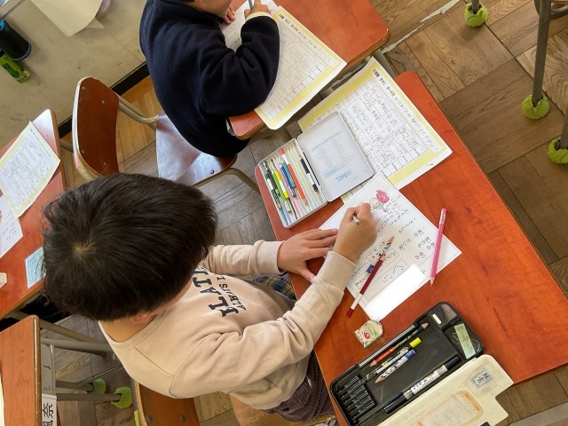 2年生は国語の学習で、おすすめの本を紹介するカード作りをしています。おすすめする本に登場する人物の中から、自分が友達になりたい人物の特徴や好きなところを紹介します。