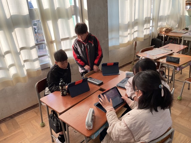 5年生が社会の学習で、ニュース番組作りに取り組んでいます。