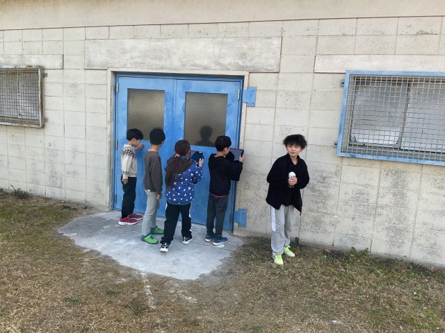 今日は校舎内の磁石がくっつく所を探しに、校舎中を回りました。