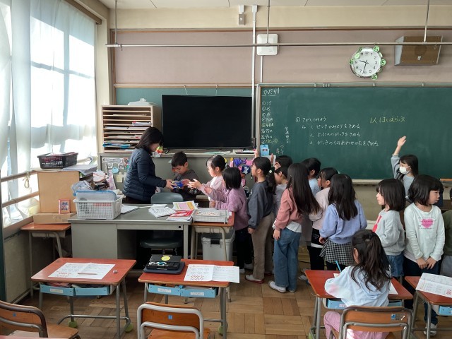 時計の問題では、絵だけではわからないようで、学習用時計を取りに来ていいよと言われると、長蛇の列になっていました。