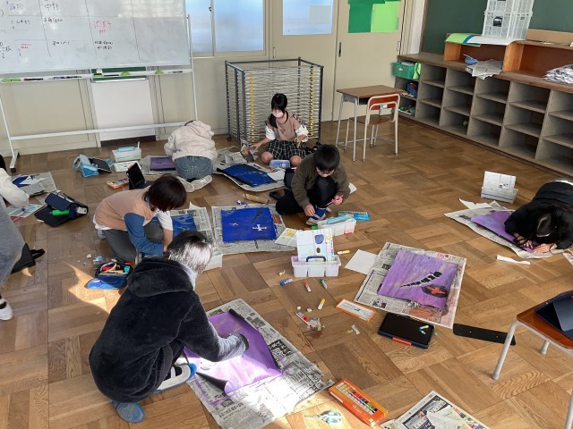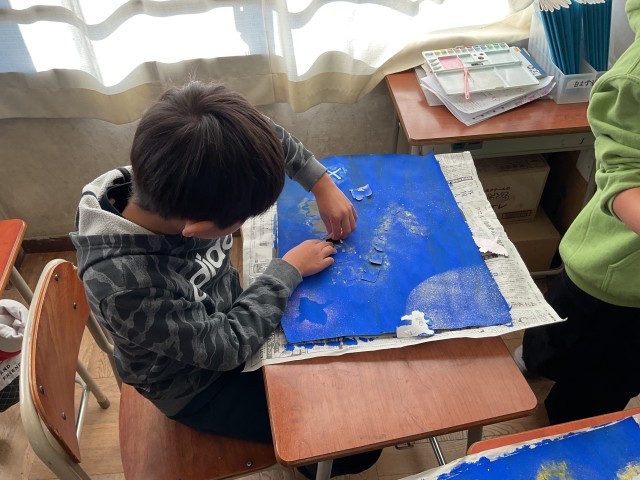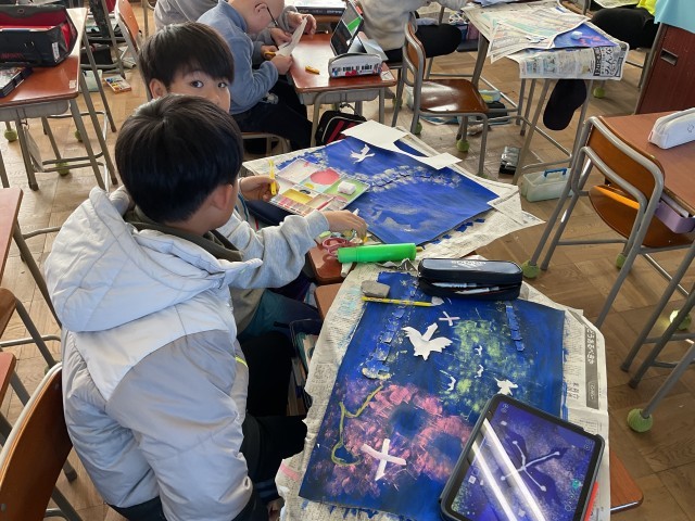 5年生の図工は銀河鉄道の作品に取り組んでいます。