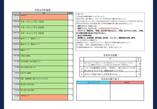 【6年生】冬休みの計画を立てよう