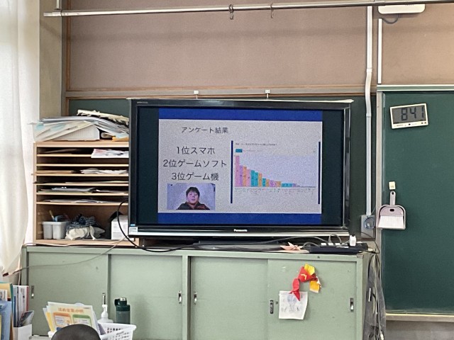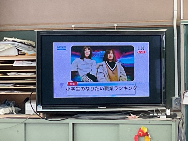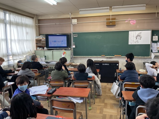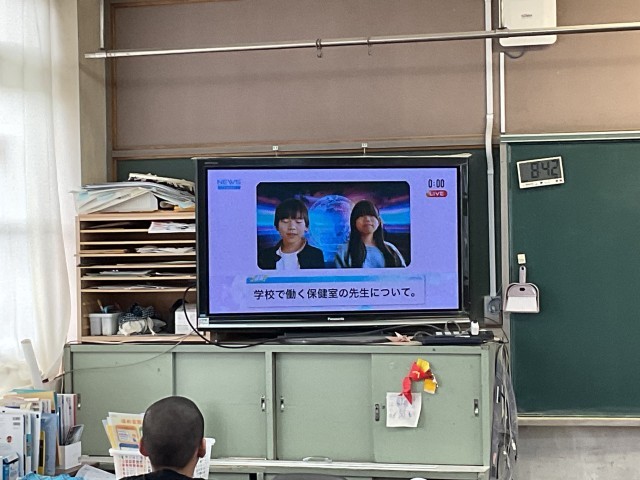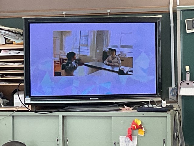 今日は5年生が社会で取り組んだニュース番組の上映会がありました。