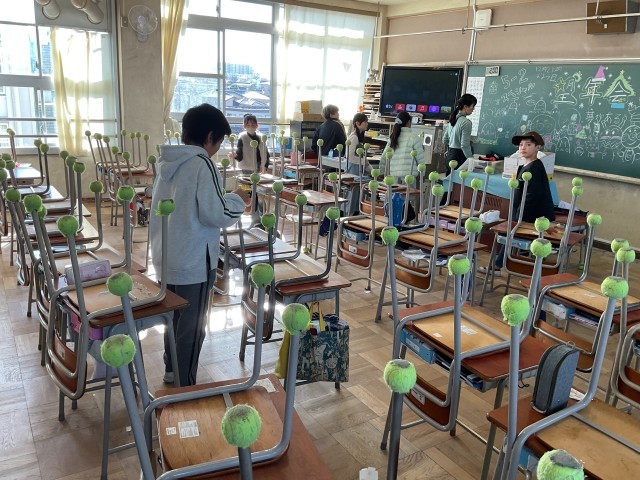 洗剤を使って落ちにくい汚れを落としてくれていたり、中には椅子につけているテニスボールの汚れを落としてくれているクラスもありました。