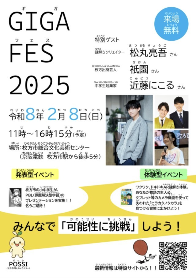 枚方市教育委員会主催のGIGA FES2025で本校3・4年生が発表します。(※学年全員は参加しません)