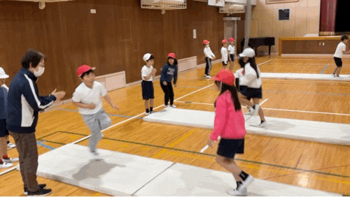 2年生の体育では担当の先生が代わり、並び方や準備の仕方を改めて確認していました。