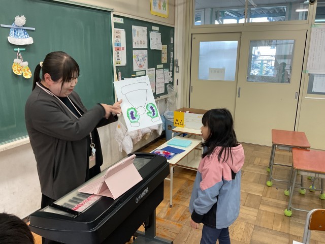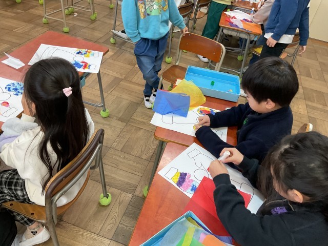 2年生の図工では、この時期のマストアイテムである手袋と帽子の作品を作ります。