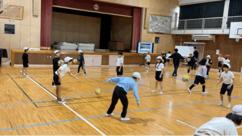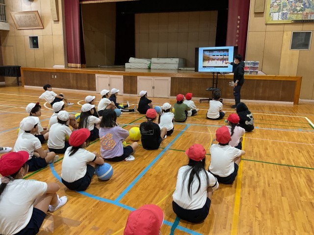 4年生の中体育では、今後取り組むプレルボールについて説明がありました。