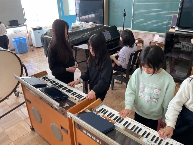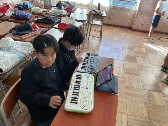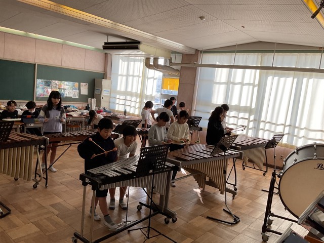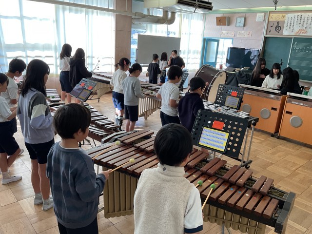 4年生は6年生とのお別れ会で合奏する為、音楽の時間に合奏の練習をしています。