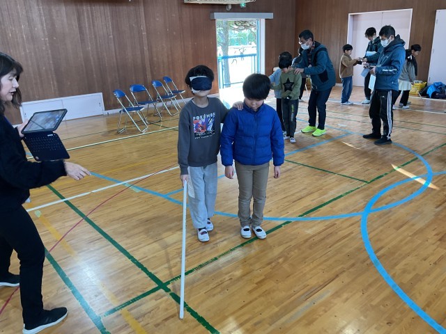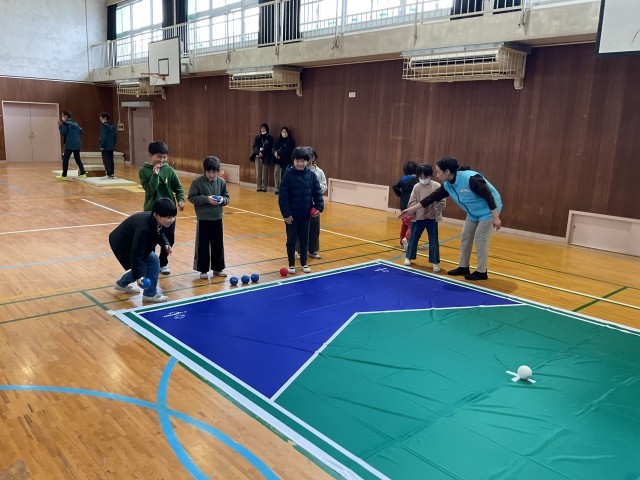 ボッチャ、白杖体験、人権についての講義を学びました。