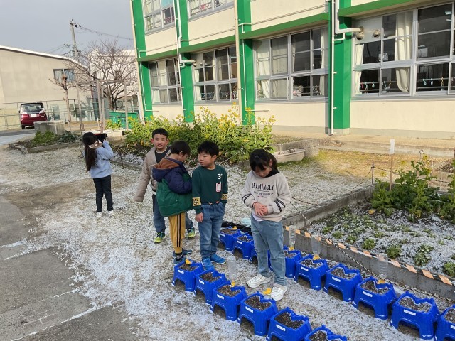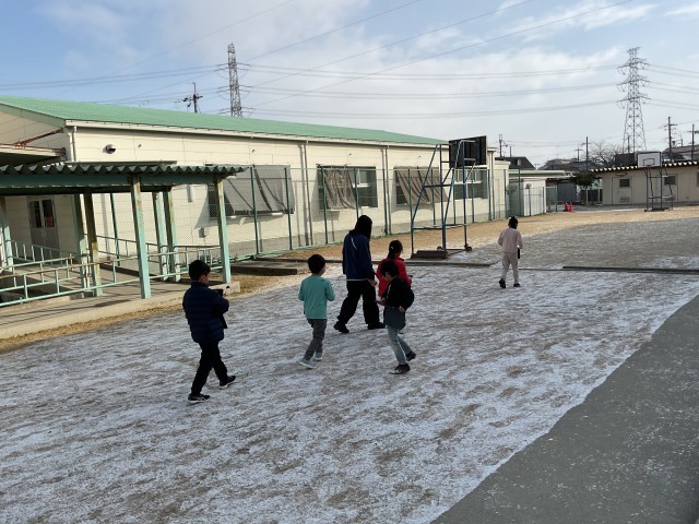 今朝校庭にうっすら雪が残っていて、その様子を見た子ども達は大はしゃぎ。