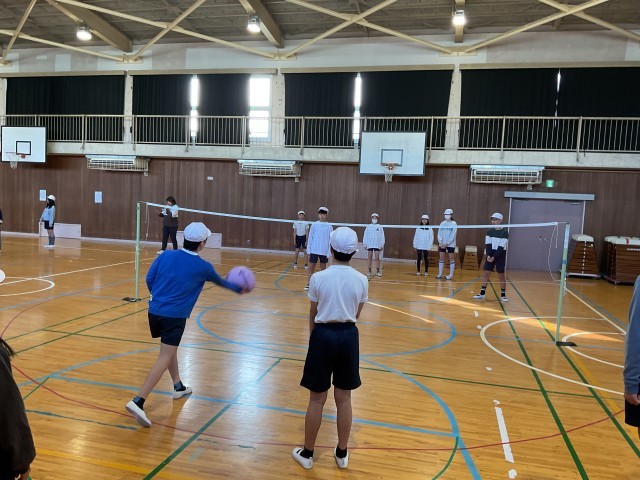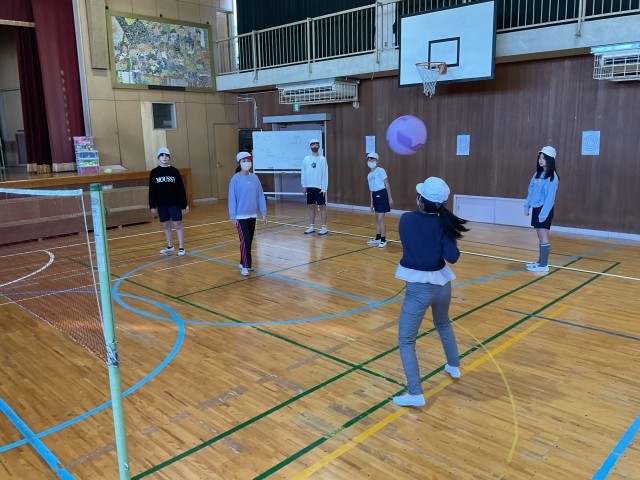 6年生の中体育では、ソフトバレーボールに取り組んでいます。