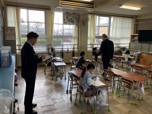 全クラスを案内させて頂き、本校の現状をご覧頂きました。明日から学級閉鎖のクラスがいくつか出た為、各クラスの人数が少ない中ですが、子ども達はいつも通り学習に取り組んでいました。