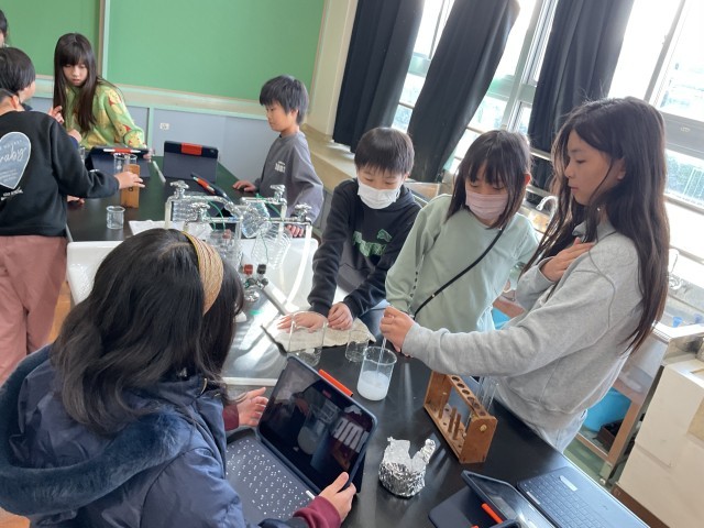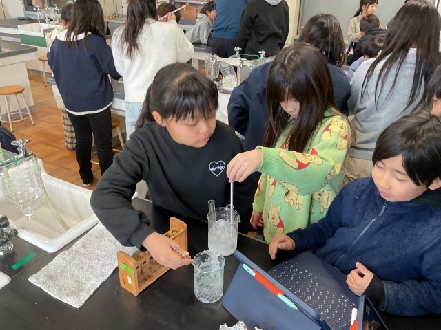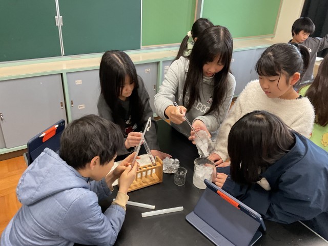 自分の役割を確認して、友達と協力して取り組みます。これまで何度も実験をしているので、手際よく実験している様子に成長を感じました。