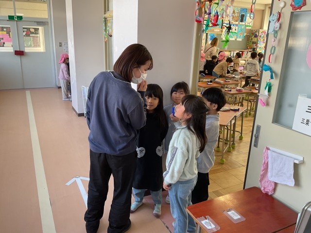 給食前に小学校の様子を探検しました。