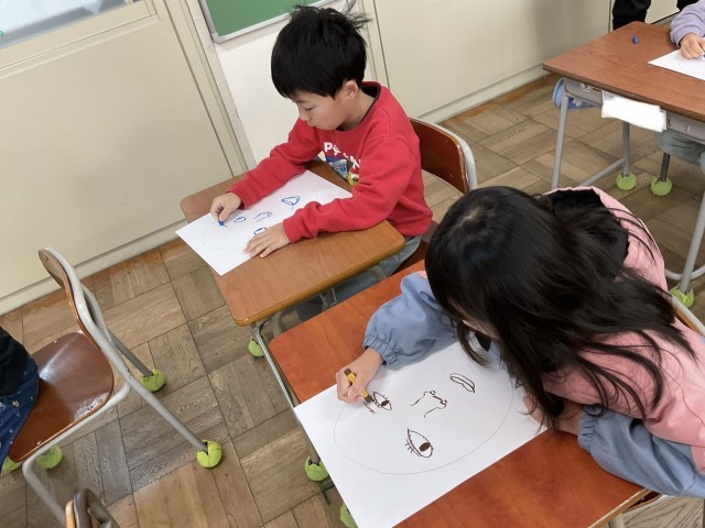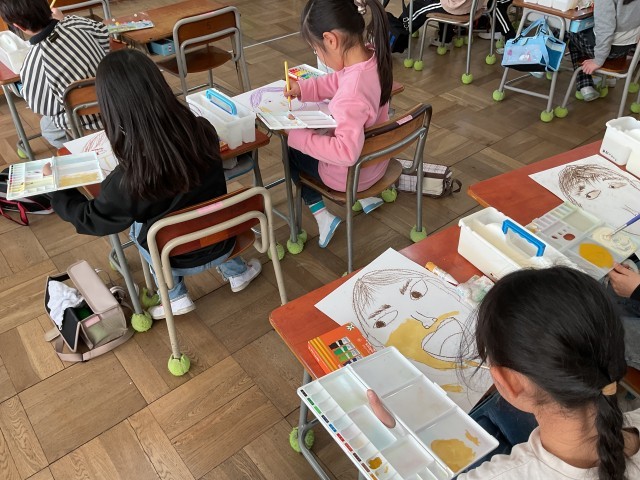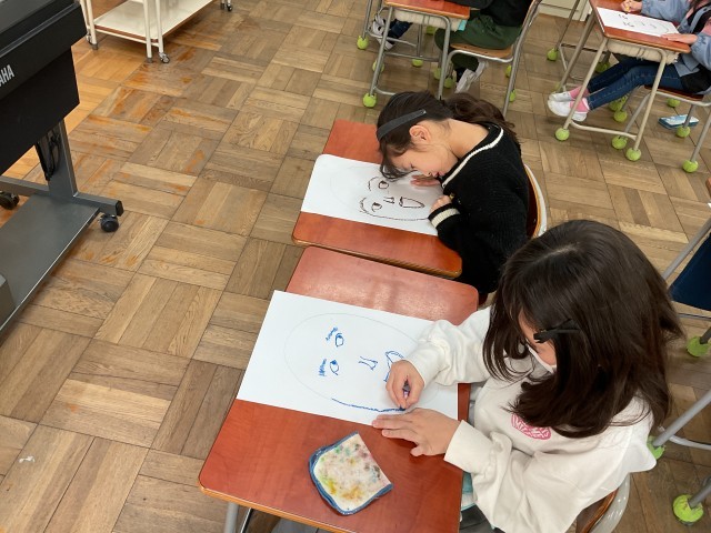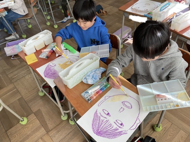 2年生の図工では自画像の作成に取り組んでいました。