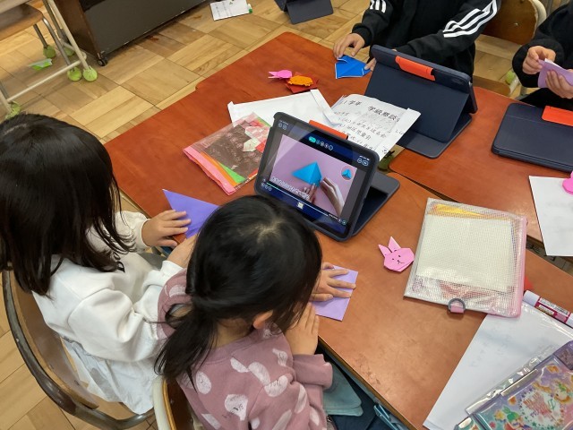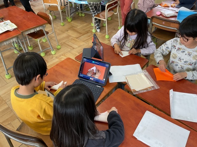 10種類の動物を折り紙で折ります。折り紙で動物の形を作るのは、とても難しいのでロイローノートでお手本を見て折ります。