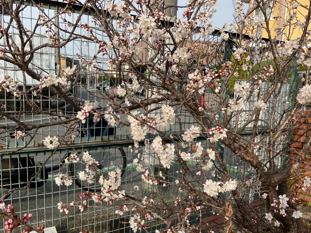 正門付近では、桜が咲き始めました。
